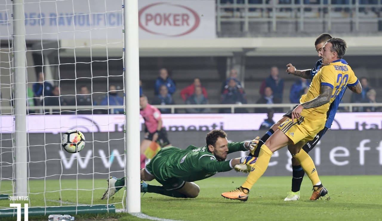 Quando Allegri ribadisce in conferenza o nelle interviste che “si deve crescere”, vuole anche dire che si deve andare in stadi tosti, come l'Atleti Azzurri d'Italia, e piazzarsi nella metà campo dei padroni di casa con una personalità ai limiti della prosopopea. È esattamente quello che fa la Juve per mezz'ora tenendo in scacco l'ottima Atalanta e annichilendola con un giro palla rapido e preciso.La personalità con cui gli uomini di Allegri prendono possesso del campo viene presto ripagata:al 21' Asamoah se ne va sulla sinistra, appoggia a limite per Il sinistro di Matuidi e, sulla ribattuta di Berisha, Bernardeschi infila il suo primo gol da bianconero.L'ex viola, per festeggiare degnamente la sua prima da titolare, non si limita al gol, ma tre minuti dopo approfitta dello sbandamento dei bergamaschi e serve a Higuain il pallone del raddoppio, che il Pipita scaraventa sotto l'incrocio.