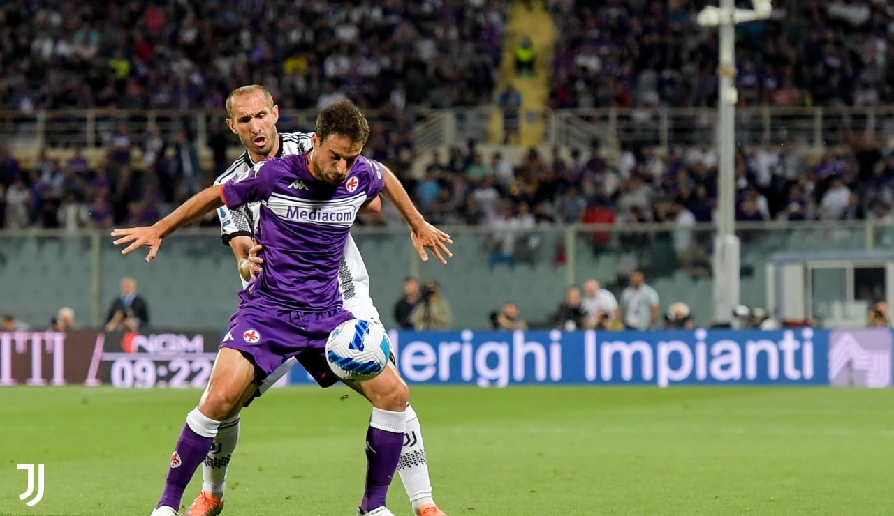 Fa caldo a Firenze e un po' il ritmo ne risente, fin dai primi minuti di gioco. La Fiorentina ha ancora da giocarsi un posto in Conference League, avendo la Roma vinto ieri a Torino e occupato l'ultima casella disponibile per l'Europa League. Nonostante questa lampante differenza di obiettivi, la Juve non arriva a Firenze a giocarsi un'amichevole e, con una Fiorentina necessariamente impegnata a cercare di creare occasioni da gol, ne esce un primo tempo tutto sommato godibile. Un primo tempo in cui Chiellini ricorda a tutti quello che è il suo mantra, vale a dire chiudere al meglio della sua condizione, e si fa apprezzare prima al 12' deviando di testa un cross insidioso dalla sinistra, e soprattutto, al 27', con un intervento provvidenziale su Bonaventura (Chiello chiuderà a fine primo tempo, dopo uno scontro di gioco con Piatek e con la maglia, verrebbe da dire quasi iconicamente, sporca di sangue). In mezzo, al 23', pericoloso anche Bernardeschi, che cerca di incunearsi nella difesa viola senza trovare lo spazio giusto per colpire.