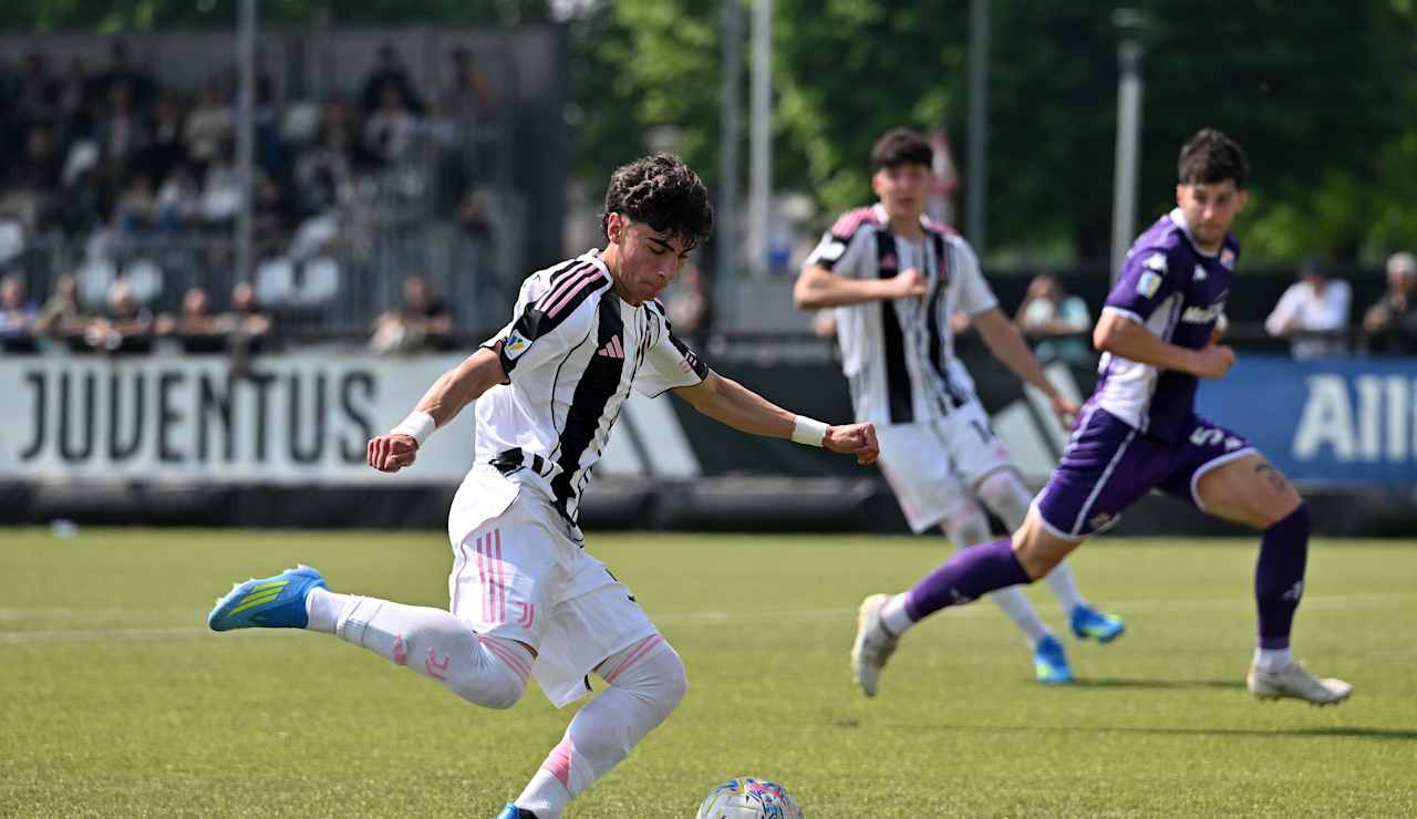 L’avvio è di marca bianconera: i ragazzi di Padoin approcciano la gara con aggressività, rendendosi subito pericolosi con un tiro-cross di Merola e un tentativo di Montero, nato da un recupero alto, che però non impensierisce Leonardelli. La pressione della Juventus cresce con il passare dei minuti: prima Durmisi impegna la difesa viola di testa, poi Leone sfiora il vantaggio con un inserimento fulmineo, sventato solo dall'intervento d'istinto del portiere ospite.