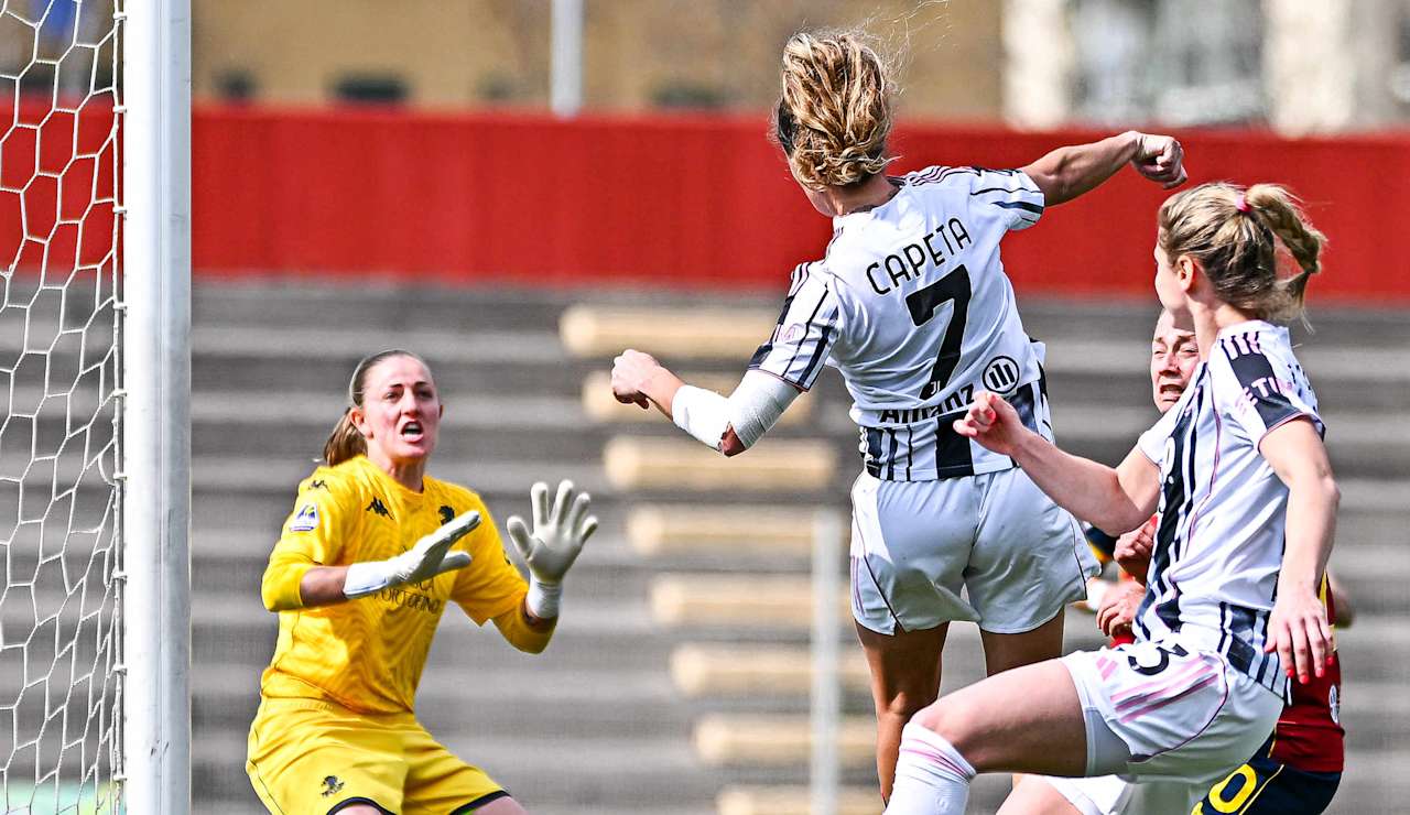 Nella ripresa la gara si accende subito, con il Genoa che costruisce un paio di occasioni pericolose nel giro di pochi minuti: prima con una conclusione di Vigilucci, ben controllata da Rusek che devia in calcio d’angolo, poi sugli sviluppi di una serie di corner consecutivi, con Hilaj che riesce a colpire di testa trovando però la pronta reazione del portiere juventino, decisivo nel tenere il punteggio in equilibrio. La Juventus Women non resta a guardare e prova a rispondere affidandosi alla qualità delle sue interpreti offensive. È Vangsgaard a costruirsi un’occasione: progressione centrale fino al limite dell’area e conclusione potente, respinta da Forcinella che si rifugia in angolo. Con il passare dei minuti le bianconere guadagnano campo e fiducia, costruendo una nuova occasione su palla inattiva. Dalla trequarti, la punizione battuta da Schatzer pesca Capeta sul secondo palo: l’incornata è precisa ma la sfera termina di poco a lato. A quattro minuti dal termine è grande la chance che capita sui piedi di Pinto, servita perfettamente da Cambiaghi, ma la zampata a botta sicura della portoghese viene deviata in corner; occasione importante anche nel recupero, questa volta sui piedi di Vangsgaard, con una girata che si impenna sopra la traversa. Una seconda frazione combattuta, in cui la Juventus Women cresce alla distanza e prova fino all’ultimo a trovare l’episodio giusto per portare a casa i tre punti, senza però riuscire a sbloccare il risultato.