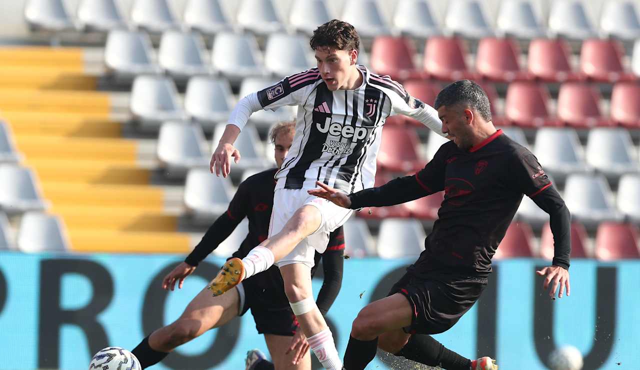 Avvio di gara vivace con la Juventus Next Gen subito propositiva nel cercare spazi contro un Forlì ordinato e compatto. Al 4’ è Turicchia a dare il primo segnale: il numero 32 bianconero si accentra e scodella in area, poi insiste e trova il modo di mettere un cross col destro, ma la difesa ospite fa buona guardia e allontana. Risponde il Forlì due minuti più tardi quando Cavallini trova spazio sulla corsia mancina e pennella al centro per Manetti: il colpo di testa del numero 5 ospite, però, non crea problemi a Mangiapoco, che blocca con sicurezza. All’8’ arriva la prima vera occasione per la Juve: Deme inventa sulla sinistra, scatta via in velocità e prova a sorprendere Martelli con un destro piazzato. L’idea è buona, la conclusione troppo centrale: il portiere romagnolo si oppone senza affanni. I bianconeri continuano a spingere e anche Okoro ci prova dalla distanza: rasoterra potente, ma Martelli blocca a terra. La gara è intensa e combattuta a centrocampo, ricca di duelli fisici, ma poche vere occasioni da gol. Le due squadre vanno così al riposo sullo 0-0, dopo una prima frazione equilibrata.
