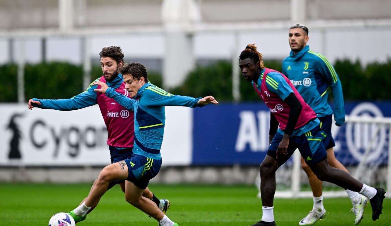Pioggia alla Continassa sull’allenamento della Juventus, che è scesa in campo questa mattina a meno due dalla sfida con il Bologna.
